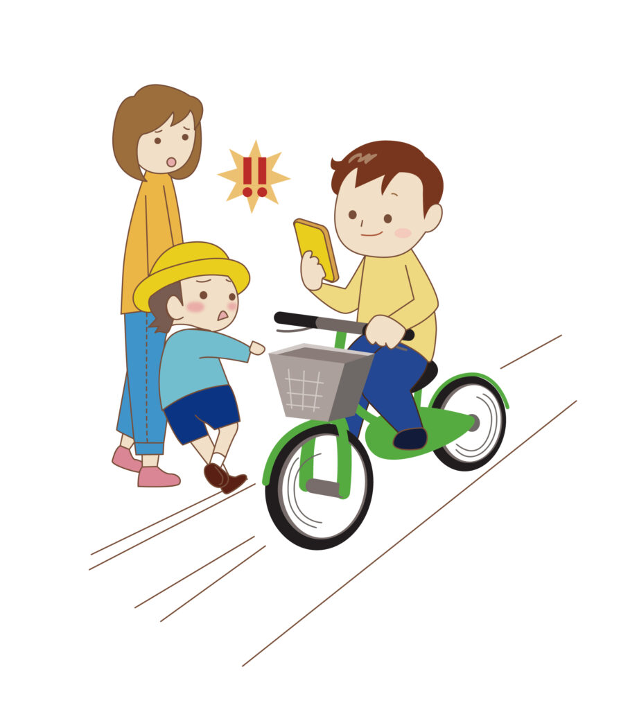 自転車運転中の「ながらスマホ」は、不安定な運転につながり、周囲の自動車や歩行者などに対する注意が不十分になり、重大な交通事故を起こす可能性のある極めて危険な行為である。